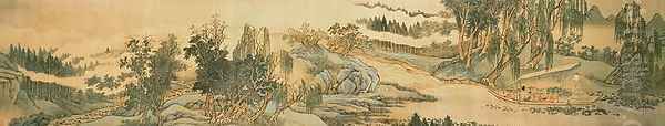 Bring the timeless beauty of Hui Wang's Handscroll depicting a landscape with the colophon poem, 'Fishing in Willow Brook', Chinese, 1706 into your home with a handmade oil painting reproduction. Carefully recreated on canvas by skilled artists using traditional techniques, this piece captures the delicate brushwork, subtle light, and vibrant color of the original masterpiece. With museum-level quality and rich texture, it brings elegance and artistic depth to any space. Enjoy free shipping and make this masterpiece a part of your personal collection.