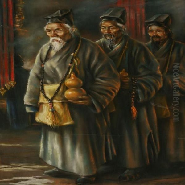 Three Chinese In Procession