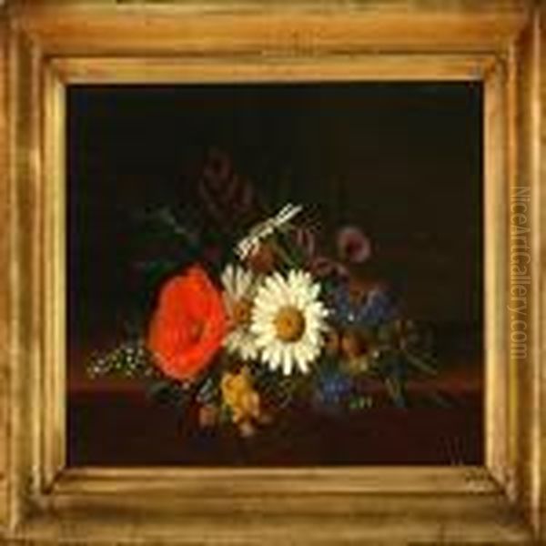 Flower Bouquet On A Stone Frame Oil Painting by I.L. Jensen