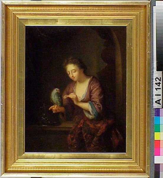 Woman Feeding a Parrot, after Arnold Boonen