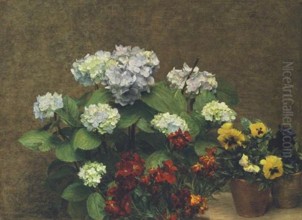 Fleurs (hortensias, Giroflees, Deux Pots De Pensees)
