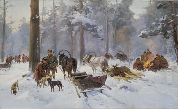 Bring the timeless beauty of Ignacy (Czeslaw Wasilewski) Zygmuntowicz's After The Elk Hunt into your home with a handmade oil painting reproduction. Carefully recreated on canvas by skilled artists using traditional techniques, this piece captures the delicate brushwork, subtle light, and vibrant color of the original masterpiece. With museum-level quality and rich texture, it brings elegance and artistic depth to any space. Enjoy free shipping and make this masterpiece a part of your personal collection.