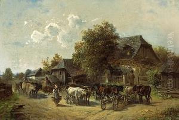 Bring the timeless beauty of Ignaz Ellminger's Oxen Carts In Front Of A Farm into your home with a handmade oil painting reproduction. Carefully recreated on canvas by skilled artists using traditional techniques, this piece captures the delicate brushwork, subtle light, and vibrant color of the original masterpiece. With museum-level quality and rich texture, it brings elegance and artistic depth to any space. Enjoy free shipping and make this masterpiece a part of your personal collection.