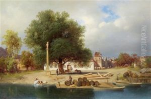 Idyllische Fluslandschaft Mit Figurlicher Staffage