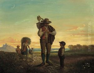 Landschaft Bei Sonnenuntergang Mit Figurlicher Staffage