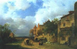 Abenddammerung Uber Einer Landdschaft Mit Figurlicher Staffage