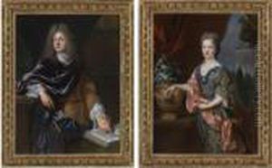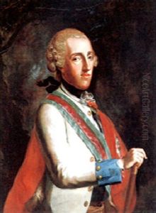 Portrait Of Wenzel Anton, Furst Von Kaunitz, Resting His Right Hand On An Open Book And His Left On A Statue Of Justice, A Library Beyond