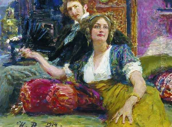 Bring the timeless beauty of Repin Iliya's Portrait of poet, prose writer, translator and dramatist Sergei Mitrofanovich Gorodetsky with his wife into your home with a handmade oil painting reproduction. Carefully recreated on canvas by skilled artists using traditional techniques, this piece captures the delicate brushwork, subtle light, and vibrant color of the original masterpiece. With museum-level quality and rich texture, it brings elegance and artistic depth to any space. Enjoy free shipping and make this masterpiece a part of your personal collection.