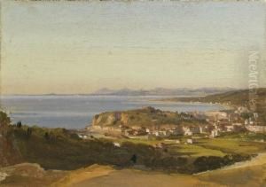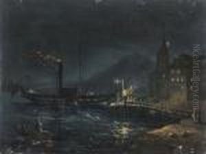 Vue De Naples La Nuit [ ; View Of Naples By Night ; Oil On Paper Signed Lower Right Caffi]