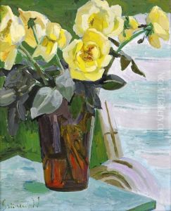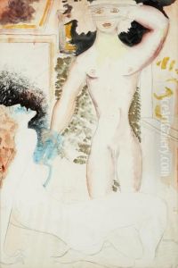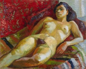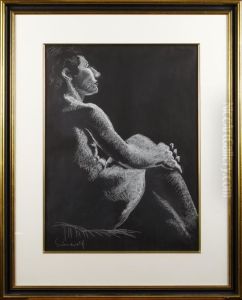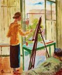 Interior Med Kvinna I Gron Kappa Och Boa - Portratt Av Frustreletskie