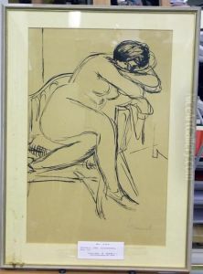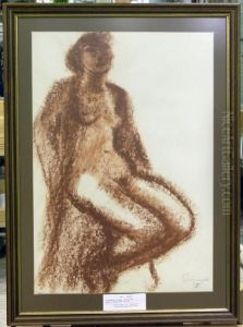 Seated Nude Female Figure With Hanging Violin