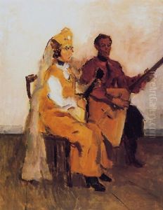 A Portrait Of Guusje Van Dongen Playing The Mandoline