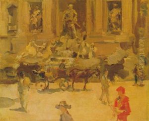Elegant Figures Strolling In Front Of The Trevi-fountain, Rome