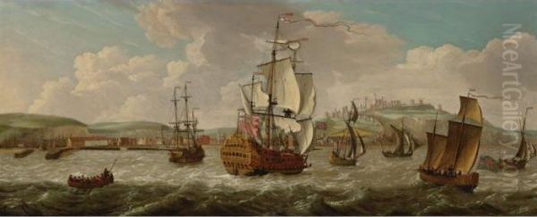 A British Man-of-war And Other Shipping Off Dover
