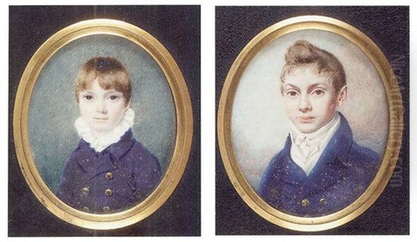Mr. And Mrs. Anderson And Their Four Young Sons, He In A Blue Coat And Frilled Shirt; She In A Low-cut White Dress With Frilled Collar And A Turban In Her Curling Hair