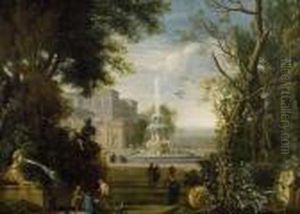 An Italianate Garden With Figures; And An Italianate Garden With Figures By A Fountain