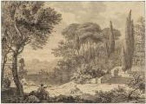 Paesaggio Arcadico Con Lavandaia Presso Un Fiume; Paesaggio Arcadico Con Pastore (2 Works)