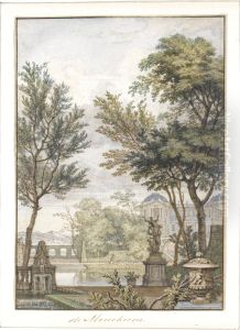 A Park Landscape With A Marble Tombe, Sculpture And Urn