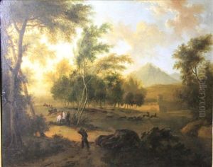 Italianate Landscape With Peasants And Animals Resting By Ruins, A Valley Beyond