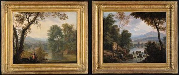 Paesaggio Arcadico Con Lavandaia Presso Un Fiume