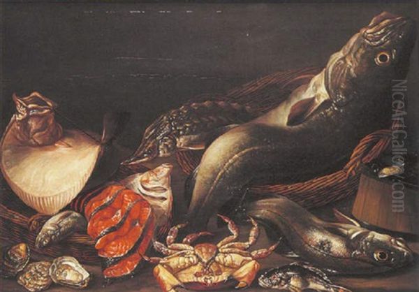 Nature Morte De Poissons Et Crustaces Avec Crabe Et Esturgeons