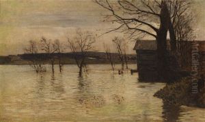 Blick Uber Eine Ebene Mit Spiegelndem Gewasser Auf Hugelzug Mit Kirchlein