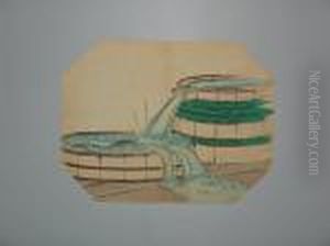 A Young Man Lying Under A Mosquito Net Hands A Charcoal-holder To A Girl Standing Behind A Folding Screen, Signed