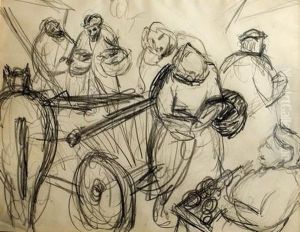 Scene De Marche Fusain Sur Papier 22 X 28 Cm (9 X 11 In.) Provenance: Christie's