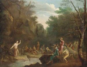 The Madonna and Child with the Infant Saint John the Baptist and Saint Anne on a terrace, a landscape beyond