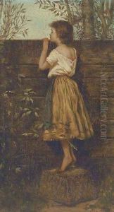 Italian countryfolk resting on a terrace above a vineyard with Lake Garda beyond
