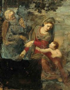 An Urn of Flowers and a Parrot on a Ledge before a Landscape