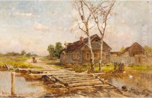 Wintry Landscape With A Brook. Oil/canvas, Signed And Dated