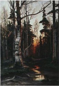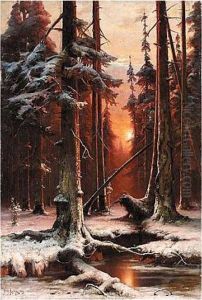 Sonnenuntergang Uber Einem Winterwald. 1897.