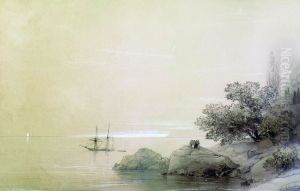 A Rocky Coastal Landscape in the Aegean with Ships in the Distance