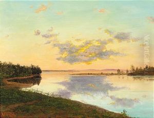 A Wooded Lake At Sunset