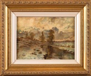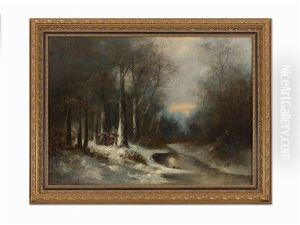 Landskab Med Hestevogn Pa En Grusvej, I Baggrunden Kirke Med Logkupler