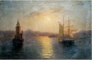 A Moonlit View Of The Bosphorus Looking Towards The Seraglio Point,with The Mosque Of Ortaky On The Right