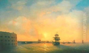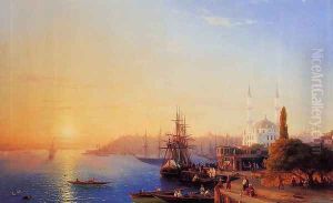 A Market Scene In Constantinople, With The Hagia Sophiabeyond