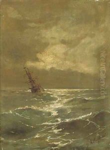 Sailing Ships At The Coast In The Moonlight