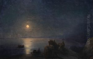 Classical Poets On A Moonlit Shore In Ancient Greece