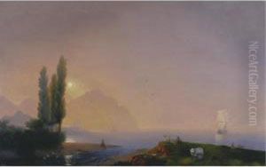 Sailing Boat Off Yalta, Ayu Dag Beyond