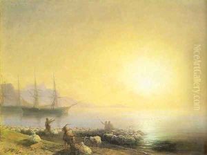 A Rocky Coastal Landscape in the Aegean with Ships in the Distance (detail)