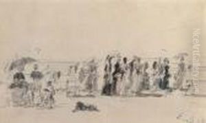 Coastal Landscape With Ships On A Stormy Sea And Two Figures On A Beach