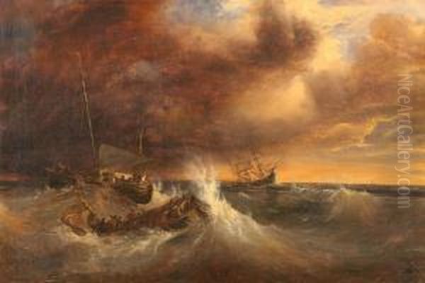 Three Ships In A Stormy Sea