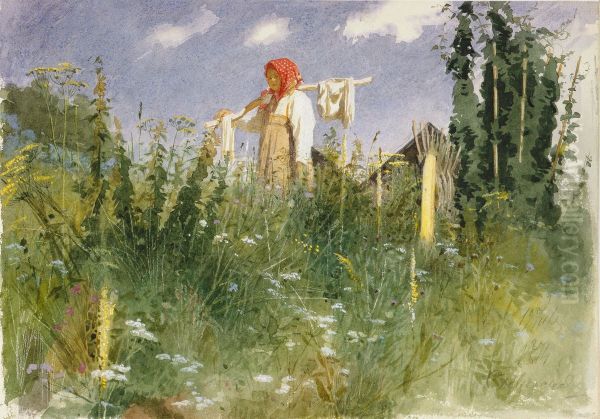 Girl with Washed Linen on the Yoke