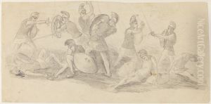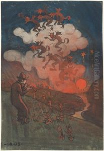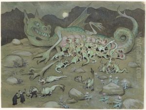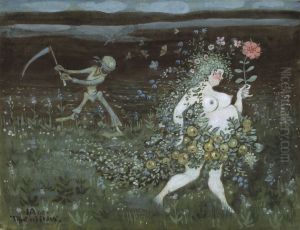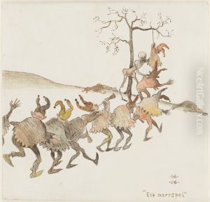 Ben Onis drom. Serie om 8 akvareller. 5, For losa tyglar rusar vinghasten ivag med dem bada