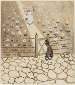 En karlekssaga. Serie om fyra bilder. 4, Prinsessan och kavaljeren aterforenas som blomma och fjaril