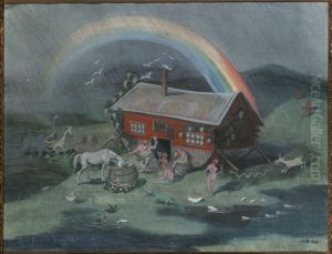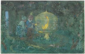 Ben Onis drom. Serie om 8 akvareller. 7, Nu har solen runnit upp och vinghasten landat pa en underbar o