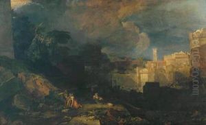Landscape with Tower, Trees and Figures; possibly Arcueil near Paris