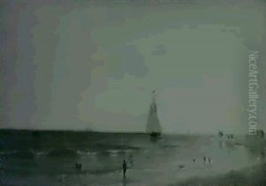 Figures On A Beach With Ships In Distance & Figure On A Beach